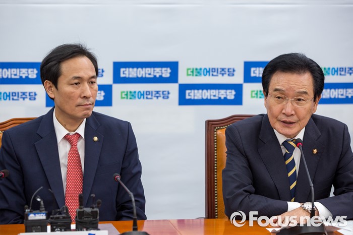 (서울=포커스뉴스) 변재일 더불어민주당 정책위의장이 21일 오후 서울 여의도 국회에서 열린 '민주주의회복TF 검찰개혁 대책회의'에 참석해 모두발언 하고 있다.