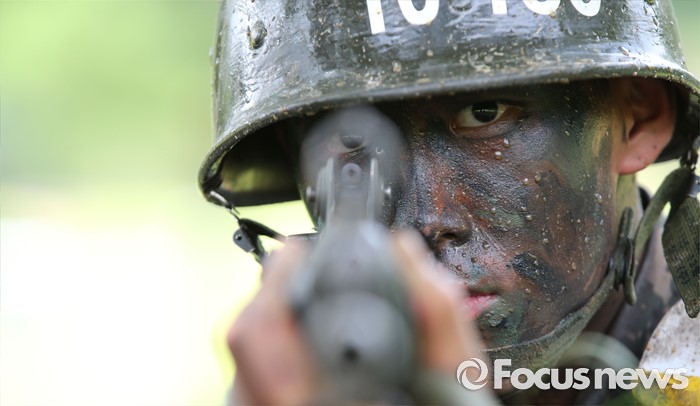 (논산=포커스뉴스) 폭염경보가 발령된 21일 충남 논산 연무읍 육군훈련소 각개전투종합훈련장에서 26교육연대 3교육대 훈련병이 훈련을 받고 있다.