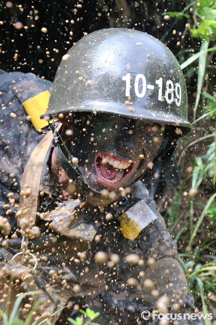 (논산=포커스뉴스) 폭염경보가 발령된 21일 충남 논산 연무읍 육군훈련소 각개전투종합훈련장에서 26교육연대 3교육대 훈련병이 훈련을 받고 있다.