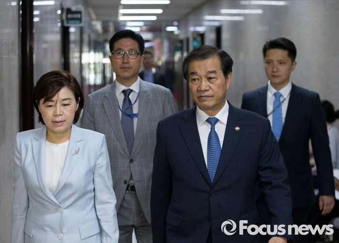 (서울=포커스뉴스) 21일 오후 서울 여의도 국회에서 황인무 국방부 차관이 정진석 새누리당 원내대표 등 지도부와 김항곤 성주군수 등 성주 사드배치 저지 투쟁위원회 관계자들의 면담에 배석하기 위해 원내대표실로 향하고 있다.