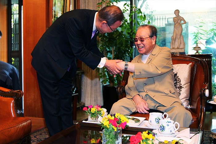 | △ 악수하는 김종필 전 총리-반기문 사무총장 |
