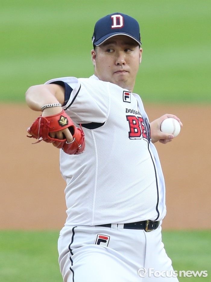 (서울=포커스뉴스) 21일 서울 잠실구장에서 열린 2016 프로야구 삼성-두산 경기에서 1회초 두산 선발투수 유희관이 투구하고 있다.