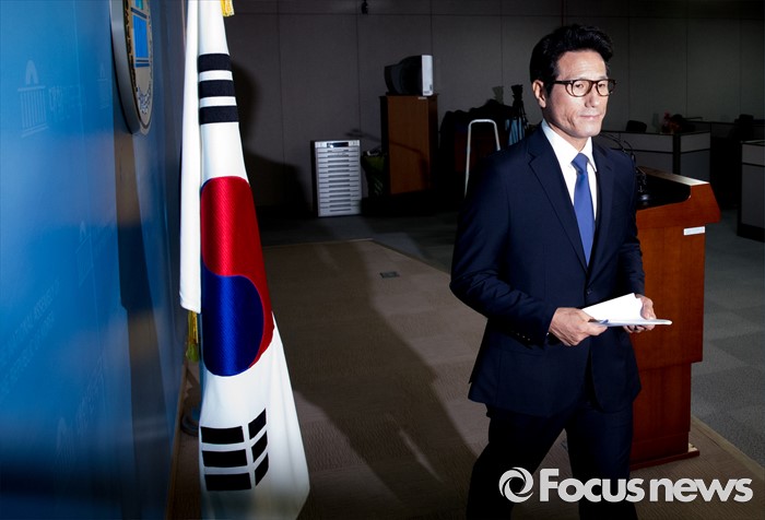 (서울=포커스뉴스) 전당대회 출마를 선언한 정병국 새누리당 의원이 22일 오전 서울 여의도 국회 정론관에서 우병우 청와대 민정수석 사퇴 촉구 및 야당 사드배치 반대 주장 중단 등 현안 관련 기자회견을 마친 뒤 퇴장하고 있다.