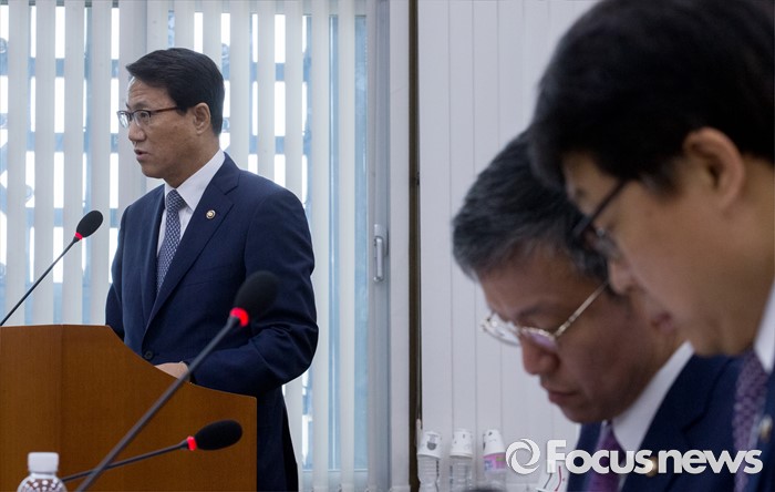 (서울=포커스뉴스) 22일 오전 서울 여의도 국회에서 열린 저출산·고령화대책 특별위원회 전체회의에 김성렬 행정자치부 차관이 업무보고를 하고 있다. 왼쪽부터 김 차관, 최상목 기획재정부 1차관, 고영선 고용노동부 차관.