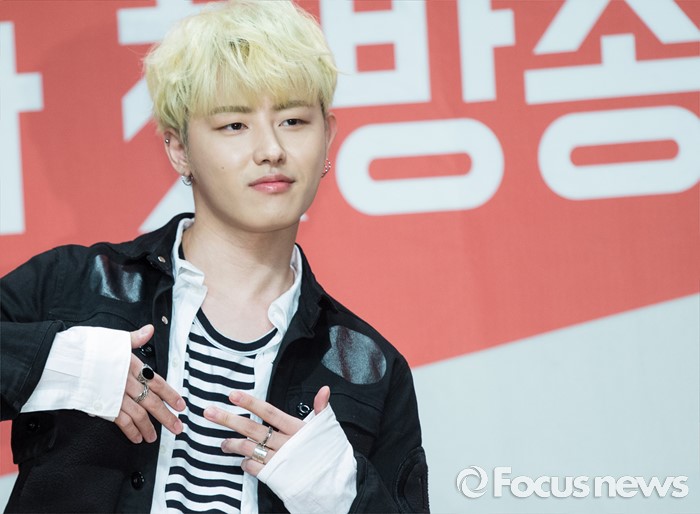 (서울=포커스뉴스) 22일 오후 서울 영등포구 63스퀘어에서 열린 Mnet '힛 더 스테이지' 제작발표회에 참석한 가수 유권이 포토타임을 갖고 있다,