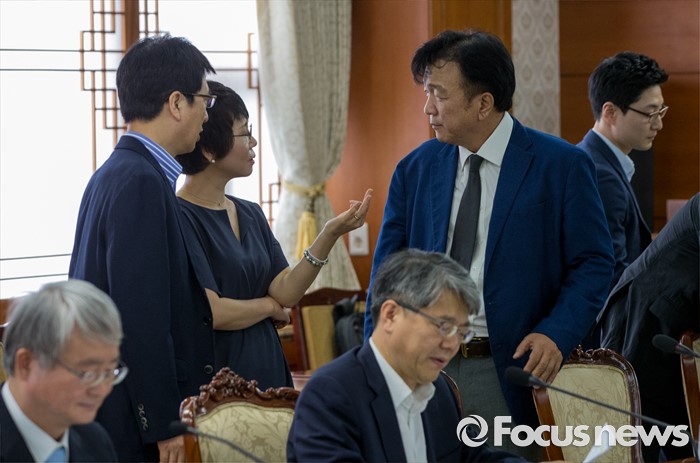 (서울=포커스뉴스) 22일 오후 서울정부청사에서 열린 규제개혁위원회의 심사에 참석한 서동원 규제개혁위 민간위원장을 비롯한 위원 및 관계자들이 대화하고 있다. 규제개혁위는 이날 회의를 통해 '부정청탁 과 금품 등 수수의 금지에 관한 법률'(김영란법) 시행령안이 불합리한 규제에 해당하는 지 여부를 심사할 예정이다.