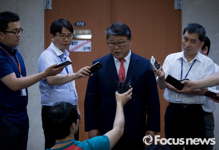 (서울=포커스뉴스) 조원진 새누리당 의원이 22일 오후 서울 여의도 국회 정론관에서8·9 전당대회 최고위원 출마 기자회견을 마친 뒤 취재진 질문에 답하기 위해 이동하고 있다.