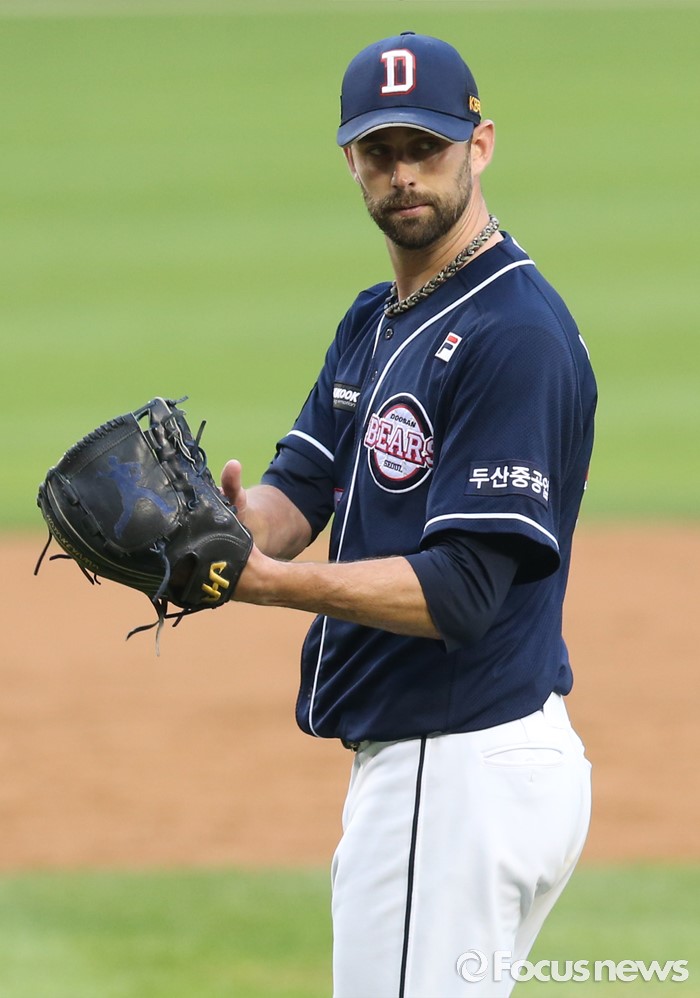 (서울=포커스뉴스) 22일 서울 잠실구장에서 열린 2016 프로야구 두산-LG 경기에서 두산 선발투수 니퍼트가 2회말 수비를 3자 범퇴로 마치고 야수들에게 박수를 보내며 더그아웃으로 향하고 있다.