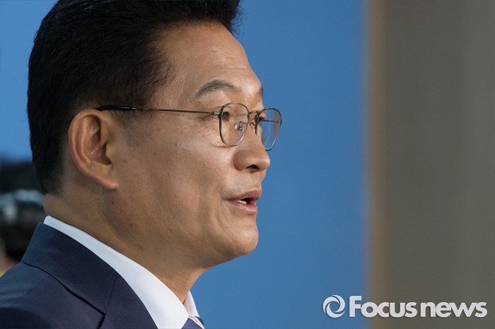 (서울=포커스뉴스) 송영길 더불어민주당 의원이 24일 오전 서울 여의도 국회 정론관에서 당대표 출마 기자회견을 하고 있다.
