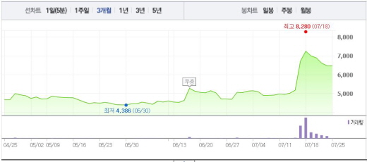 다날은 포켓몬 GO의 온라인 결제사 지분 보유 소식에 주목을 받았다. 포켓몬 GO는 미국, 캐나다, 호주 등에서 시범 출시된 상태며 현재 앱 매출 순위에서 최상위권에 올라갔다. 한국에서도 포켓몬 GO 열풍이 불고 있다.주가흐름<사진출처=네이버 캡쳐>