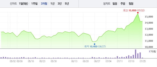 NEW는 26일 오전 9시26분 현재 전 거래일 대비 0.70%(100원) 상승한 1만4300원에 거래되고 있다. NEW는 15일부터 22일까지 1~5%의 상승폭을 기록했다.
