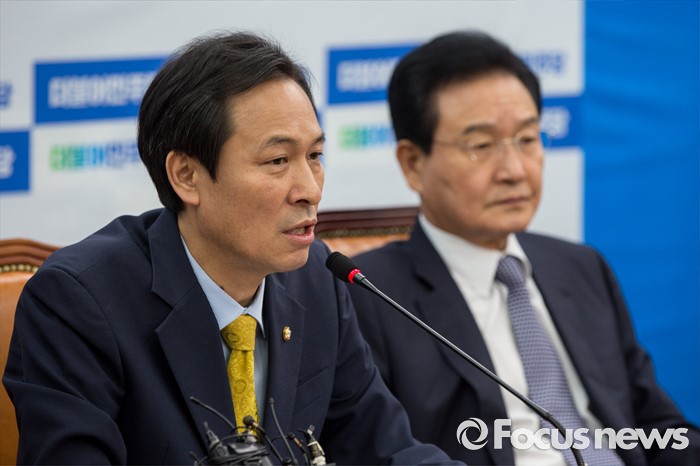 (서울=포커스뉴스) 우상호 더불어민주당 원내대표가 26일 오전 서울 여의도 국회에서 열린 원내대책회의에 참석해 모두발언 하고 있다.