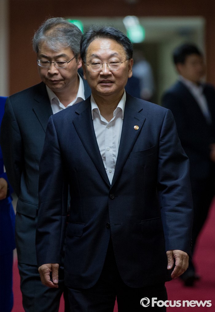 (서울=포커스뉴스) 26일 오전 정부서울청사에서 열린 국무회의에 유일호(맨 앞) 경제부총리 겸 기획재정부 장관을 비롯한 국무위원들이참석하고 있다.