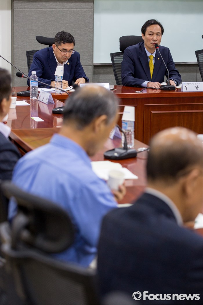 (서울=포커스뉴스) 우상호 더불어민주당 원내대표가 26일 오전 서울 여의도 국회의원회관에서 열린 '농업과 행복한 미래 창립식'에 참석해 인사말 하고 있다.