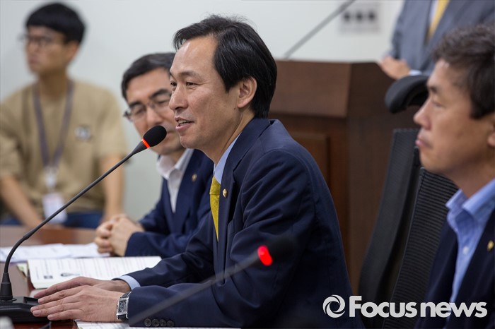 (서울=포커스뉴스) 우상호 더불어민주당 원내대표가 26일 오전 서울 여의도 국회의원회관에서 열린 '농업과 행복한 미래 창립식'에 참석해 인사말 하고 있다.