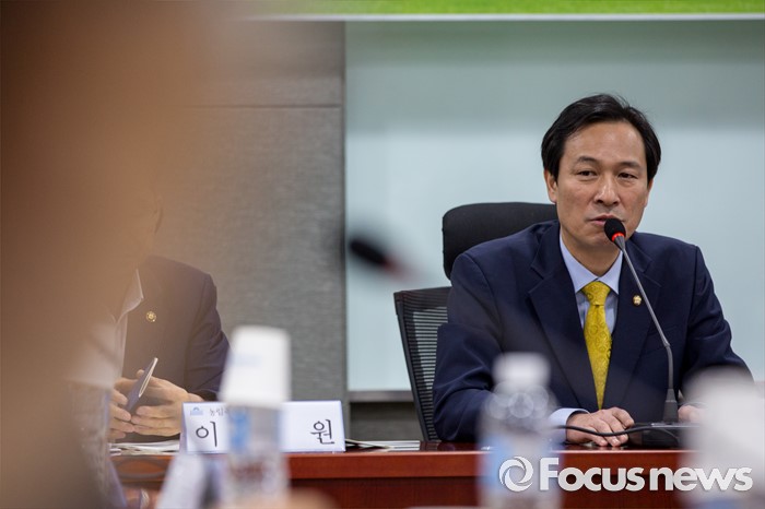(서울=포커스뉴스) 우상호 더불어민주당 원내대표가 26일 오전 서울 여의도 국회의원회관에서 열린 '농업과 행복한 미래 창립식'에 참석해 인사말 하고 있다.