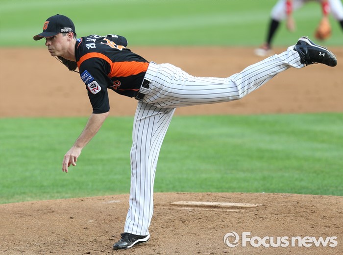 (서울=포커스뉴스) 26일 서울 잠실구장에서 열린 2016 프로야구 롯데-LG 경기에서 1회말 롯데 선발투수 레일리가 투구하고 있다.