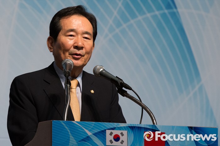 (서울=포커스뉴스) 정세균 국회의장이 26일 오후 서울 중구 롯데호텔에서 열린 '한중 지도자 친선의 밤' 행사에서 참석해 축사를 하고 있다.