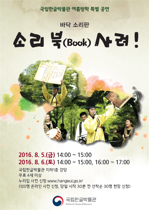 (서울=포커스뉴스) 국립한글박물관은 8월5일부터 6일까지 여름방학 특별공연 '소리북(Book) 사려!'를 개최한다.