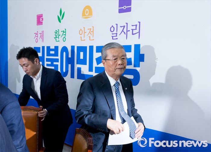 (서울=포커스뉴스) 27일 오전 서울 여의도 국회에서 더불어민주당 비상대책위원회의를 마친 김종인 비대위 대표가 퇴장하고 있다.