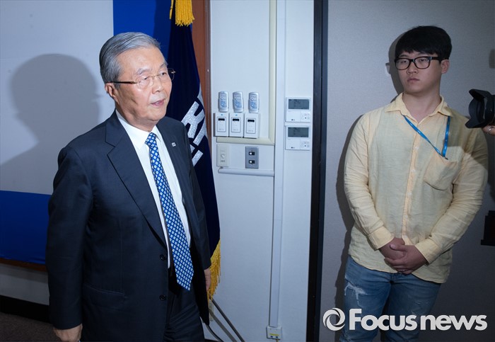 (서울=포커스뉴스) 27일 오전 서울 여의도 국회에서 더불어민주당 비상대책위원회의를 마친 김종인 비대위 대표가 퇴장하고 있다.
