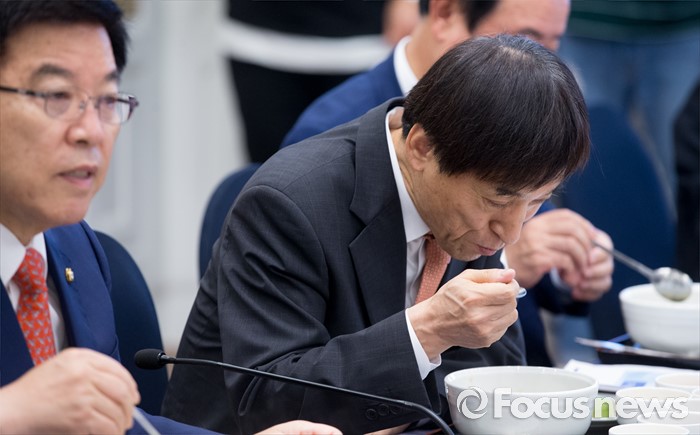 이 총재는 이번 회의에서 EMEAP 산하 기구의 활동상황을 점검하고 '글로벌 경제 및 통화정책의 비동조화와 정책 대응(Managing stability and growth under economic and monetary divergence)'을 주제로 아시아·태평양 지역 회원국 중앙은행 총재들과 의견을 교환할 계획이다.(서울=포커스뉴스) 27일 오전 서울 여의도 국회 귀빈식당에서 열린 경재재정연구포럼 조찬 간담회에 참석한 이주열 한국은행 총재가 식사를 하고 있다. 2016.07.27 박동욱 기자