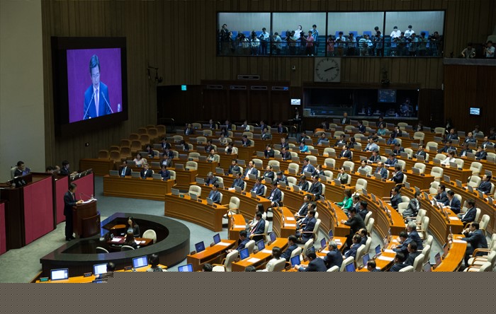 (서울=포커스뉴스) 27일 오전 서울 여의도 국회에서 열린 344회 국회(임시회) 3차 본회의에 참석한 황교안 국무총리가 2016년도 제1회 추가경정예산안에 대한 정부의 시정연설을 하고 있다.