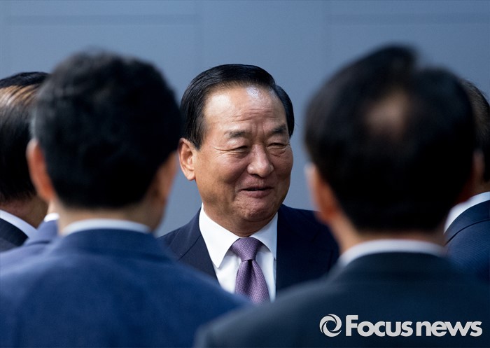 (서울=포커스뉴스) 27일 오후 서울 여의도 국회 의원회관에서 열린 한일의원연맹 간사회 및 총회에 참석한 서청원 새누리당 의원이 동료 의원들과 인사하고 있다.