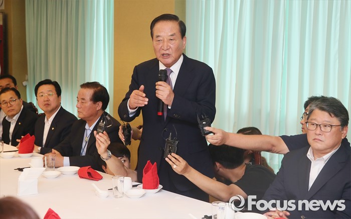 (서울=포커스뉴스) 서청원 새누리당 의원이 27일 서울 여의도 한 식당에서 열린 친박(친박근혜)계 의원 만찬회동에서 인사말을 하고 있다.