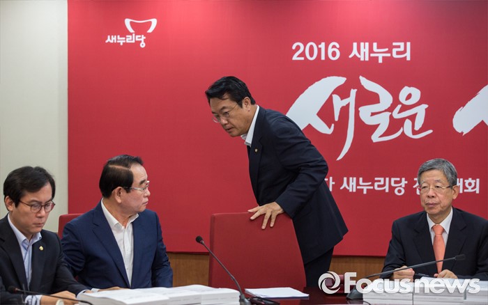 (서울=포커스뉴스) 정진석 새누리당 원내대표가 28일 오전 서울 여의도 새누리당사에서 열린 혁신비상대책위원회의에 참석해 취재진 공개 회의를 마친 뒤 회의실을 나서고 있다.