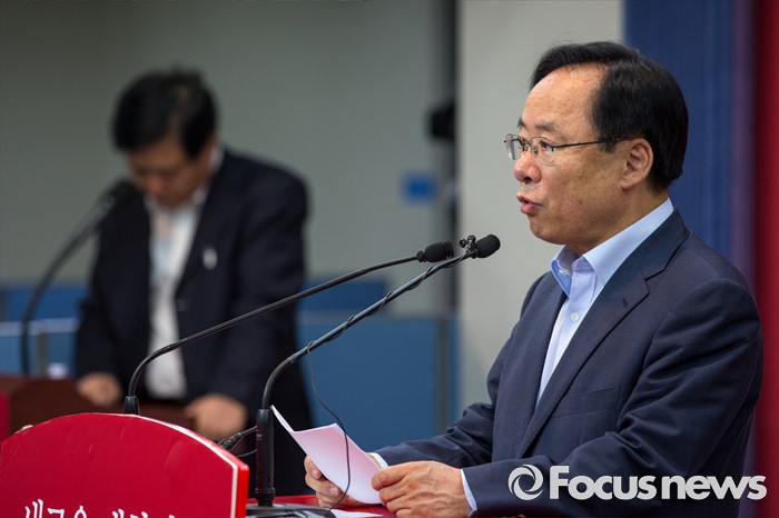 (서울=포커스뉴스) 새누리당 전당대회 당대표 선거에 출마한 이주영 새누리당 의원이 28일 오전 서울 여의도 새누리당사에서 정책공약 발표를 하고 있다.