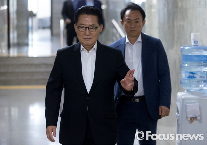 (서울=포커스뉴스) 28일 오후 서울 여의도 국회에서 열린 국민의당 비공개 의원총회에 박지원(왼쪽) 비상대책위원장과 김명진 원내대표비서실장이 참석하고 있다. 검찰은 이날 김수민, 박선숙, 박준영 의원에 대한 영장 재청구를 신청했다.