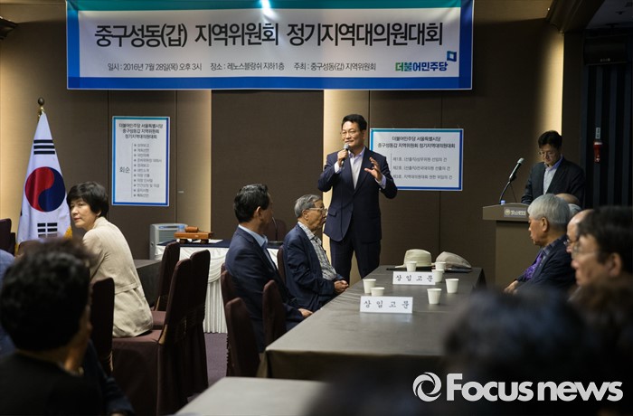 (서울=포커스뉴스) 더불어민주당 송영길 의원이 28일 오후 서울 성동구 레노스블랑쉬 웨딩홀에서 열린 서울 중구·성동갑 지역대의원대회에서 발언하고 있다.