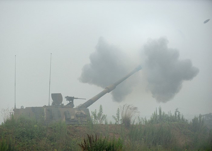 | △ K-9 자주포, 포탄 발사 |