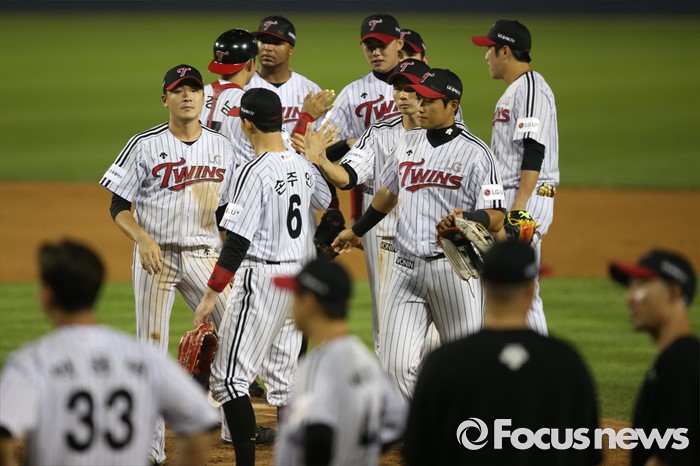 (서울=포커스뉴스) 28일 오후 서울 잠실구장에서 열린 2016 타이어뱅크 KBO리그 롯데-LG 경기에서 롯데에 5-2으로 2점차 승리한 LG 선수들이 마운드에 모여 함께 기뻐하고 있다.