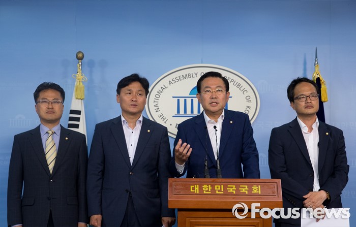 (서울=포커스뉴스) 국회 안전행정위원회 소속 더불어민주당 의원들이 29일 오전 서울 여의도 국회 정론관에서 박근혜 정부와 경찰의 백남기 농민 사건 진상 규명 촉구 기자회견을 하고 있다. 왼쪽부터 김정우, 김영진 의원, 박남춘 간사, 박주민 의원.