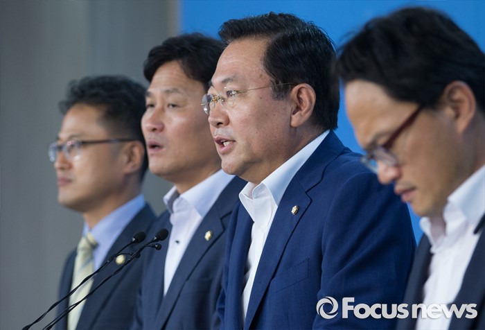 (서울=포커스뉴스) 국회 안전행정위원회 소속 더불어민주당 의원들이 29일 오전 서울 여의도 국회 정론관에서 박근혜 정부와 경찰의 백남기 농민 사건 진상 규명 촉구 기자회견을 하고 있다. 왼쪽부터 김정우, 김영진 의원, 박남춘 간사, 박주민 의원.