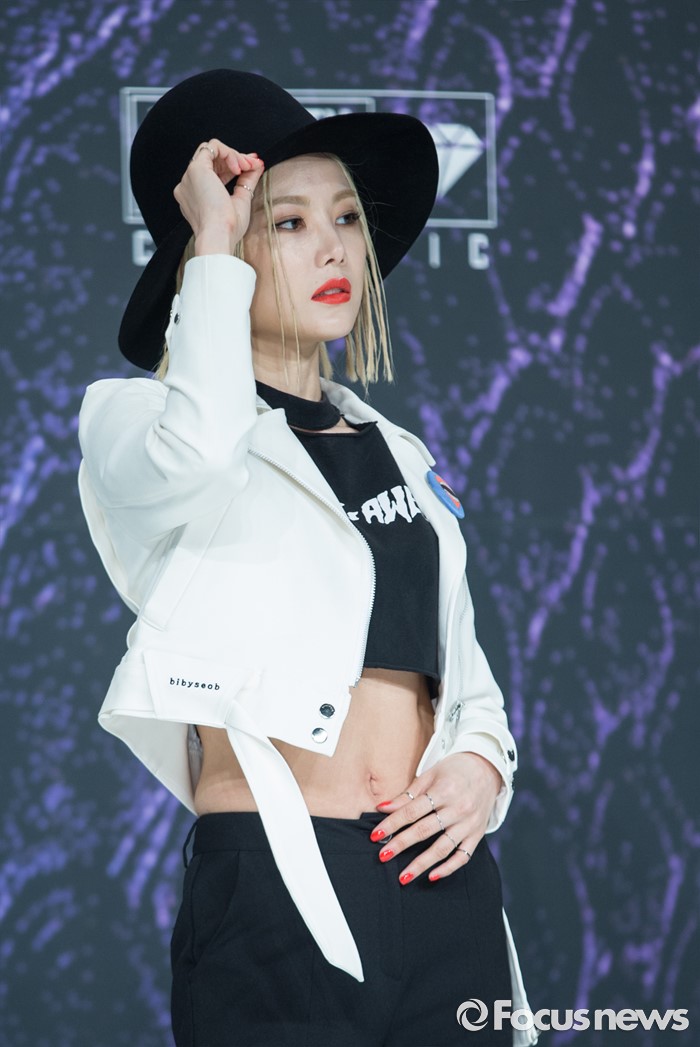 (서울=포커스뉴스) 29일 오전 서울 영등포구 타임스퀘어 아모리스홀에서 열린 Mnet '언프리티 랩스타 3' 제작발표회에 참석한 래퍼 미료가 포토타임을 갖고 있다.