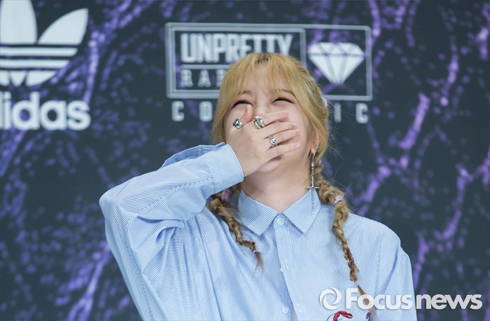 (서울=포커스뉴스) 29일 오전 서울 영등포구 타임스퀘어 아모리스홀에서 열린 Mnet '언프리티 랩스타 3' 제작발표회에 참석한 래퍼 유나킴이 포토타임을 갖고 있다.