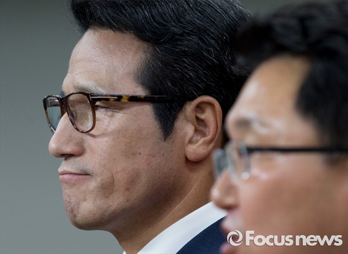 (서울=포커스뉴스) 전당대회 대표최고위원 출마를 선언한 정병국(왼쪽), 김용태 새누리당 의원이 29일 오후 서울 여의도 당사에서 단일화 발표 기자회견을 하고 있다. 이날 두 의원은 여론조사를 통해 정병국 의원으로 단일화를 결정했다.