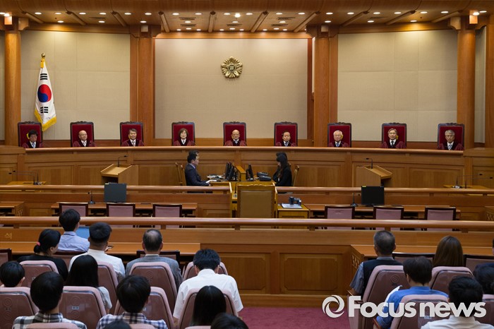 이어 "일부에서 이야기 하듯 국회의원에 한해 부정청탁의 면죄부를 주거나 특혜를 부여하기 위함은 결코 아니다"고 재차 강조했다. 앞서 강효석 새누리당 의원은 지난 7일 김영란법에서 국회의원의 부정청탁 예외조항을 삭제하고 법 적용 대상에서 언론인과 사학교원을 제외하자는 개정안을 발의한 바 있다.박한철(가운데) 헌법재판소장과 법관들이 김영란법 위헌 여부 판결을 위해 28일 오후 서울 종로구 헌법재판소 대심판정에 착석해 있다. 2016.07.28 이승배 기자