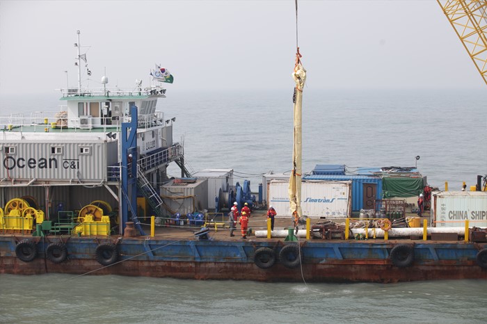 인양의 핵심작업이 성공함에 따라 세월호 인양도 속도가 붙을 전망이다. 해수부 관계자는 "9월 말로 계획된 세월호 인양 시기를 맞출 수 있도록 최선의 노력을 다하겠다"고 밝혔다.해양수산부는 29일 세월호 선수를 약 5도 들어 올리는 선수 들기 공정과 선체 하부에 리프팅 빔 18개를 설치하는 작업에 성공했다고 밝혔다. 작업은 28일 오전 7시30분쯤 시작해 이날 오후 8시10분쯤 완료했다. <사진제공=해양수산부> 2016.03.31 포커스포토