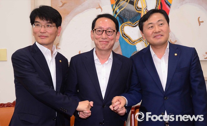 이들은 조만간 만나 재차 협상을 벌일 것으로 예상된다.1일 서울 여의도 국회에서 여야3당 원내수석부대표가 8월 임시국회 세월호 특별법 연장과 추경 등 현안 관련 공조 협의를 위한 회동에서 손을 맞잡고 있다. 왼쪽부터 더불어민주당 박완주, 새누리당 김도읍, 국민의당 김관영. 2016.08.01 강진형 기자