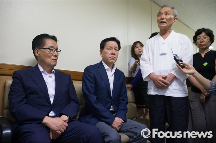 | △ 백남기대책위 공동대표 설명 듣는 국민의당 박지원 |