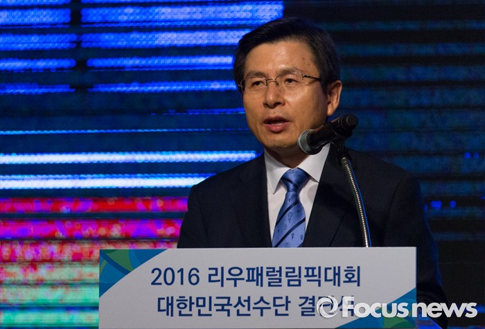 (서울=포커스뉴스) 황교안 국무총리가 2일 오후 서울 송파구 올림픽파크텔에서 열린 2016 리우 패럴림픽 대한민국 선수단 결단식에 자리해 격려사를 하고 있다.