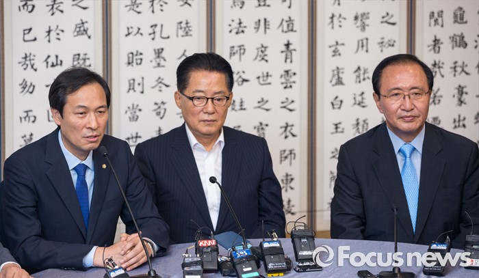 (서울=포커스뉴스) 우상호(왼쪽) 더불어민주당 원내대표가 3일 오전 서울 여의도 국회에서 열린 원내대표 회동에 참석해 모두발언 하고 있다.