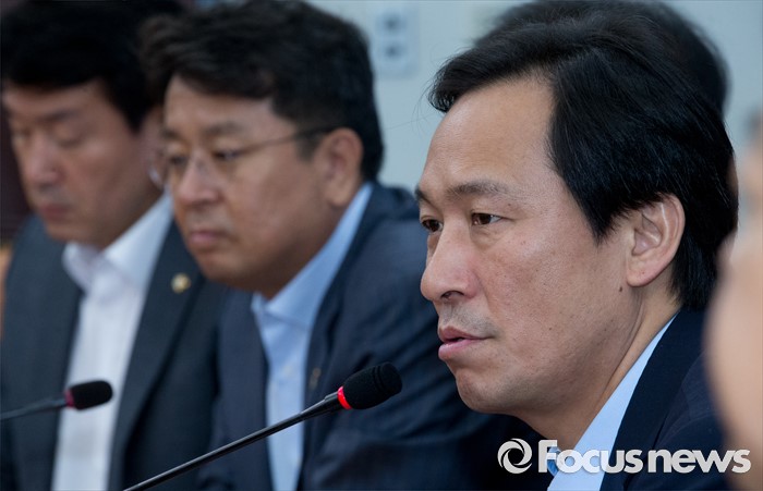 (서울=포커스뉴스) 4일 오전 서울 여의도 국회에서 열린 더불어민주당 사드대책위원회의에 참석한 우상호 원내대표가 모두발언을 하고 있다.