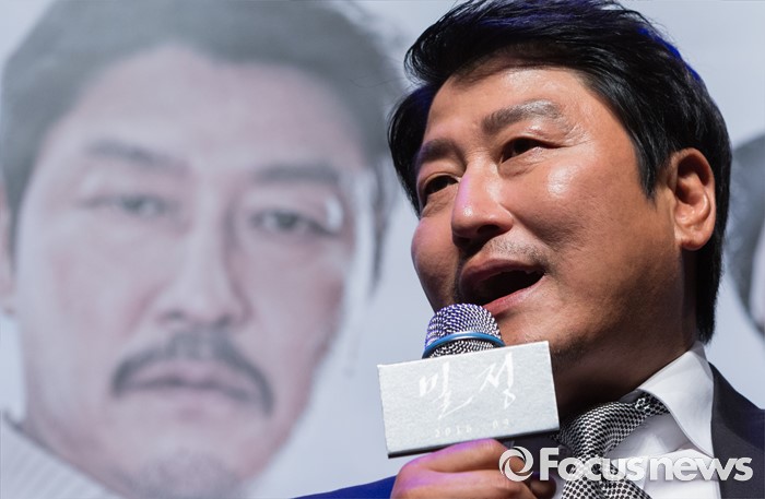 (서울=포커스뉴스) 배우 송강호가 4일 오전 서울 강남구 압구정 CGV에서 열린 영화 '밀정' 제작보고회에 참석해 사회자의 질문에 답하고 있다. 배우 송강호, 공유, 한지민, 엄태구, 신성록 등이 출연하는 영화 '밀정'은 일제 강점기 무장독립단체 의열단과 일본 경찰 간의 암투를 그린 작품으로 오는 9월 개봉 예정이다.