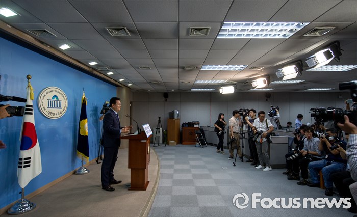 (서울=포커스뉴스) 더불어민주당 전당대회 당대표에 출마한 송영길 더불어민주당 의원이 4일 오전 서울 여의도 국회에서 공약발표 기자회견을 하고 있다.