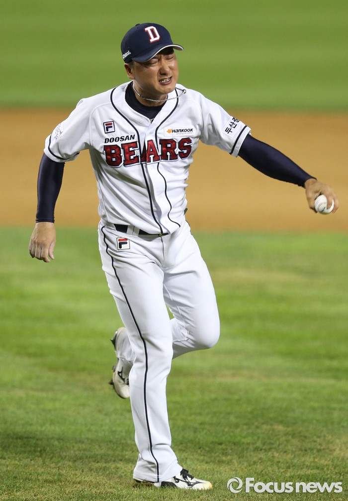 | △ 고통스러워하는 두산 투수 정재훈 |